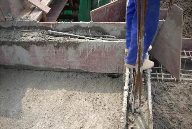 ?、蹓χ艥仓r應先從根部開始分層振搗,每層厚度不要超過500mm,依次向前推進,每澆筑一層應從低處往高處振搗。