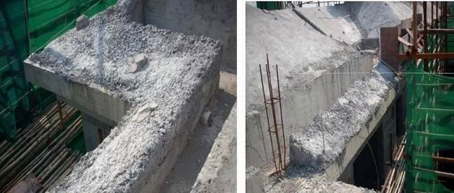 ▲施工縫不應設置在懸挑板部位,且施工縫表面處理不符合要求