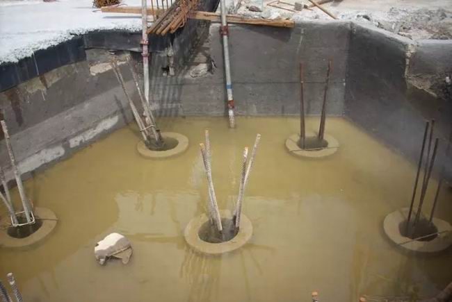 ?、贅犊變?nèi)泥、水較多未清理,或清理不干凈,使樁芯鋼筋泡在泥水中。
