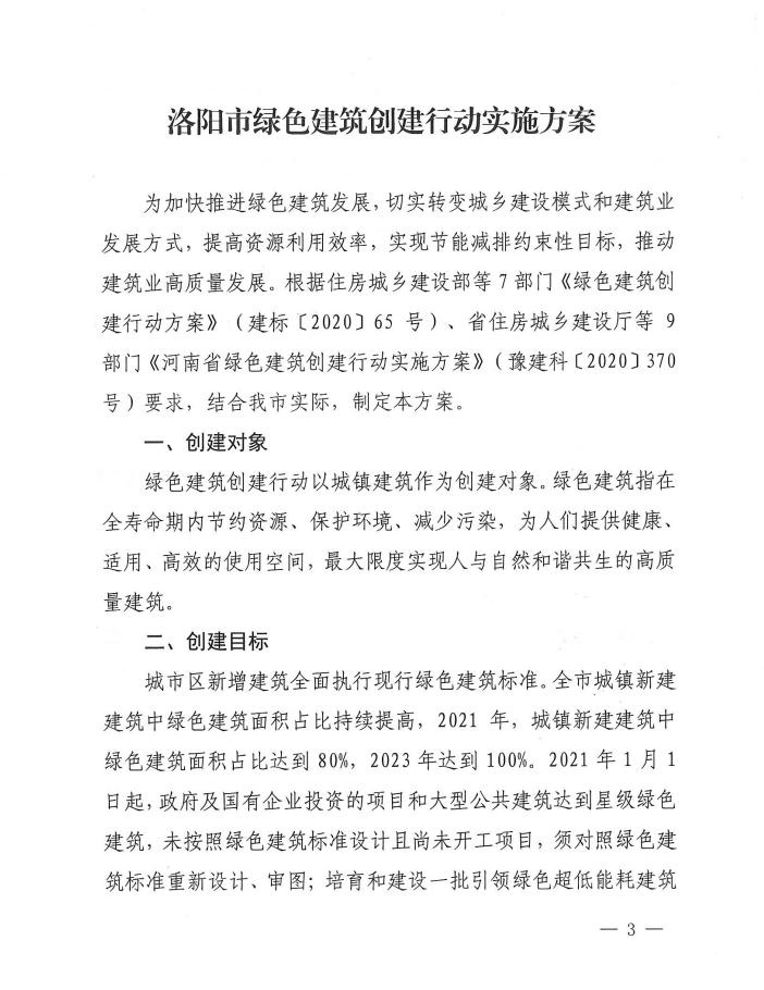 關(guān)于印發(fā)洛陽市綠色建筑創(chuàng)建行動(dòng)實(shí)施方案的通知