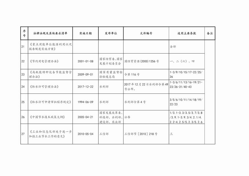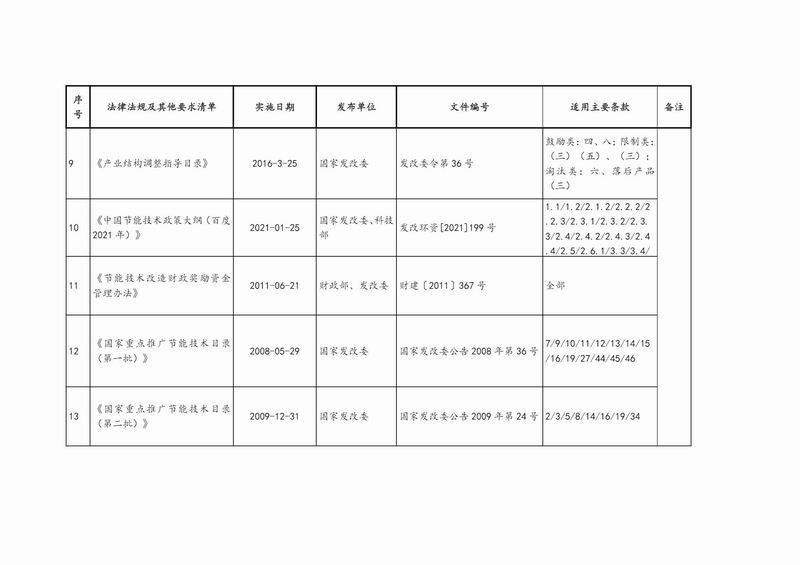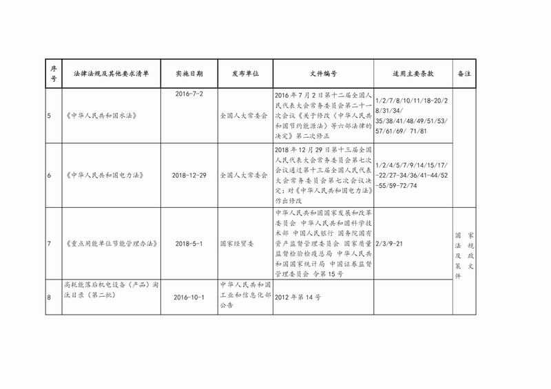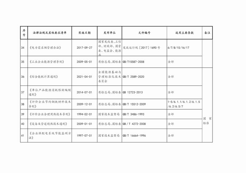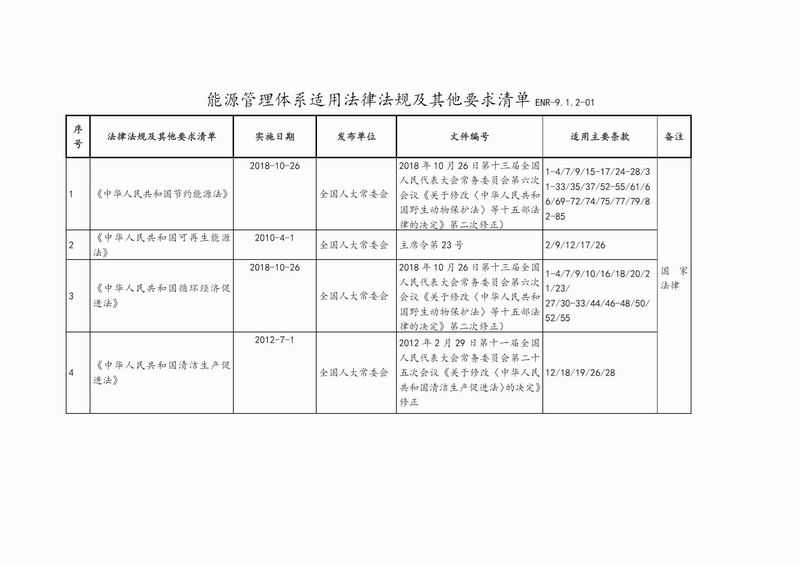ENR-9.1.2-01能源管理體系適用法律法規(guī)及其他要求清單