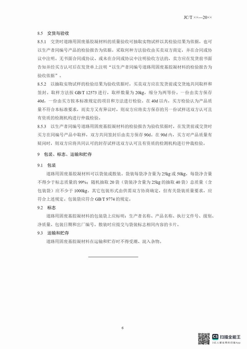 報(bào)批稿《道路用固廢基膠凝材料》行業(yè)標(biāo)準(zhǔn)