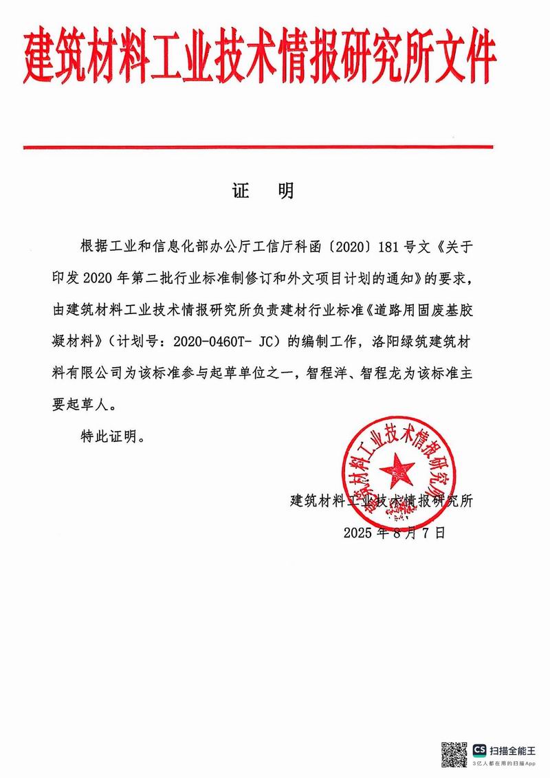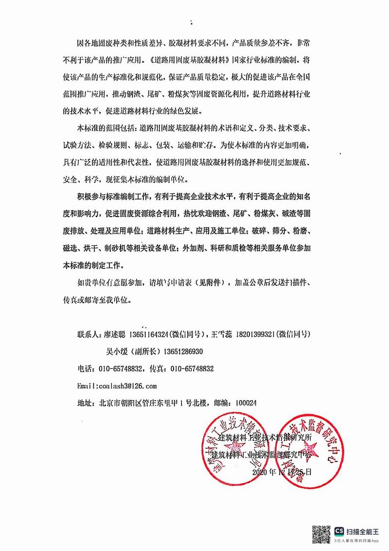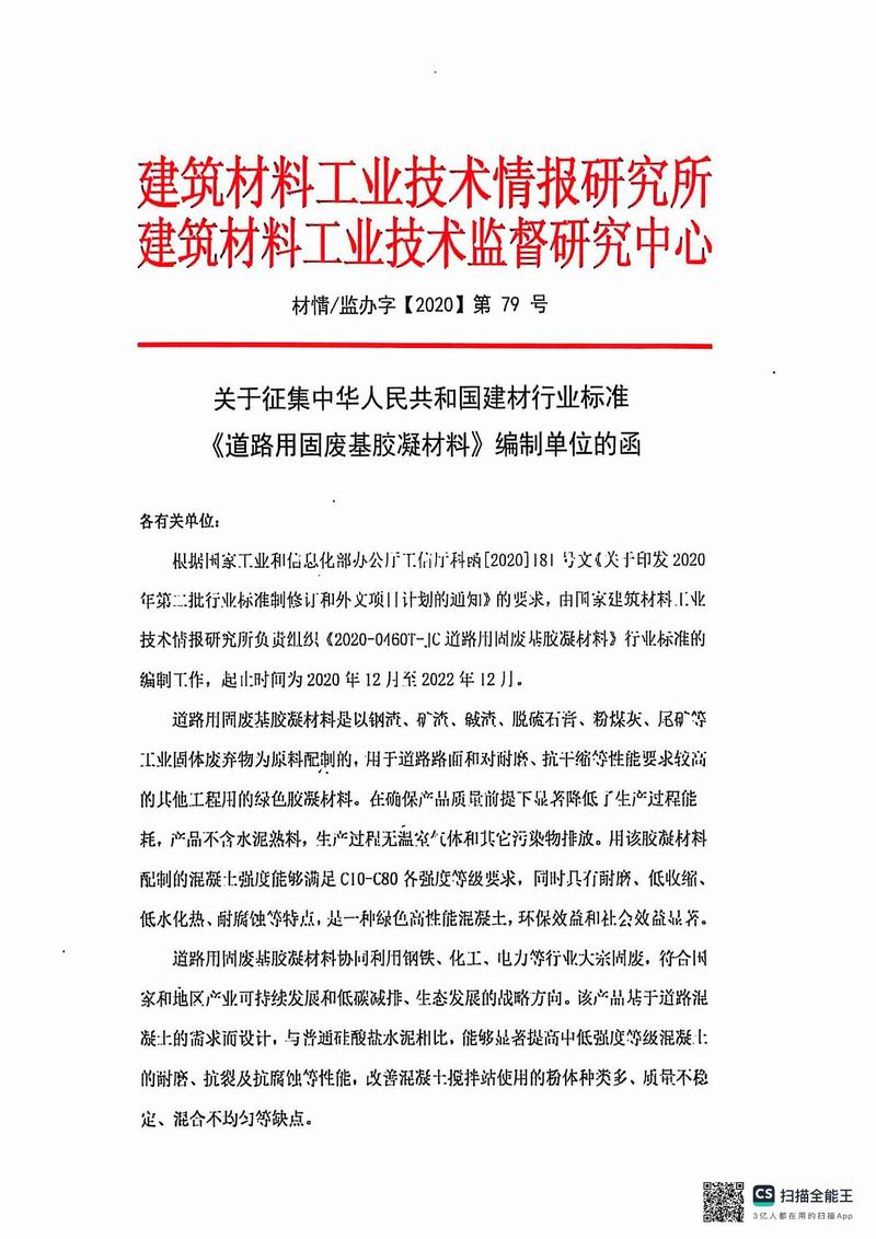 報(bào)批稿《道路用固廢基膠凝材料》行業(yè)標(biāo)準(zhǔn)