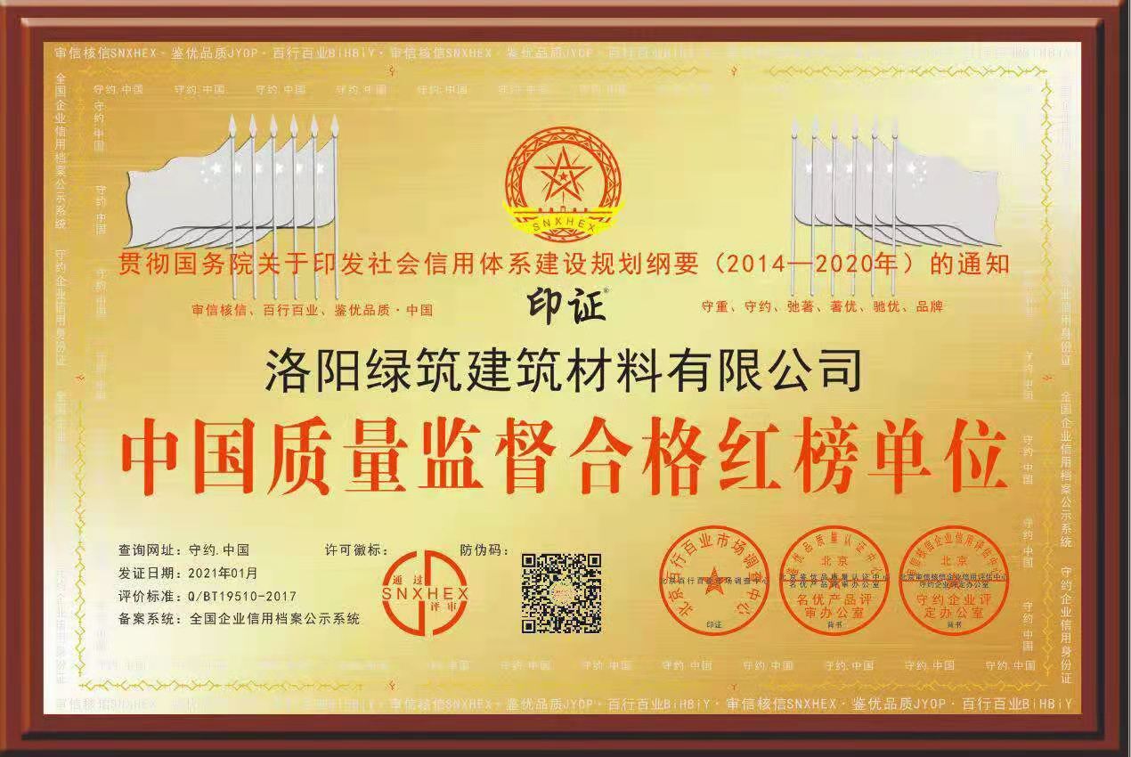 中國質(zhì)量監(jiān)督合格紅榜單位