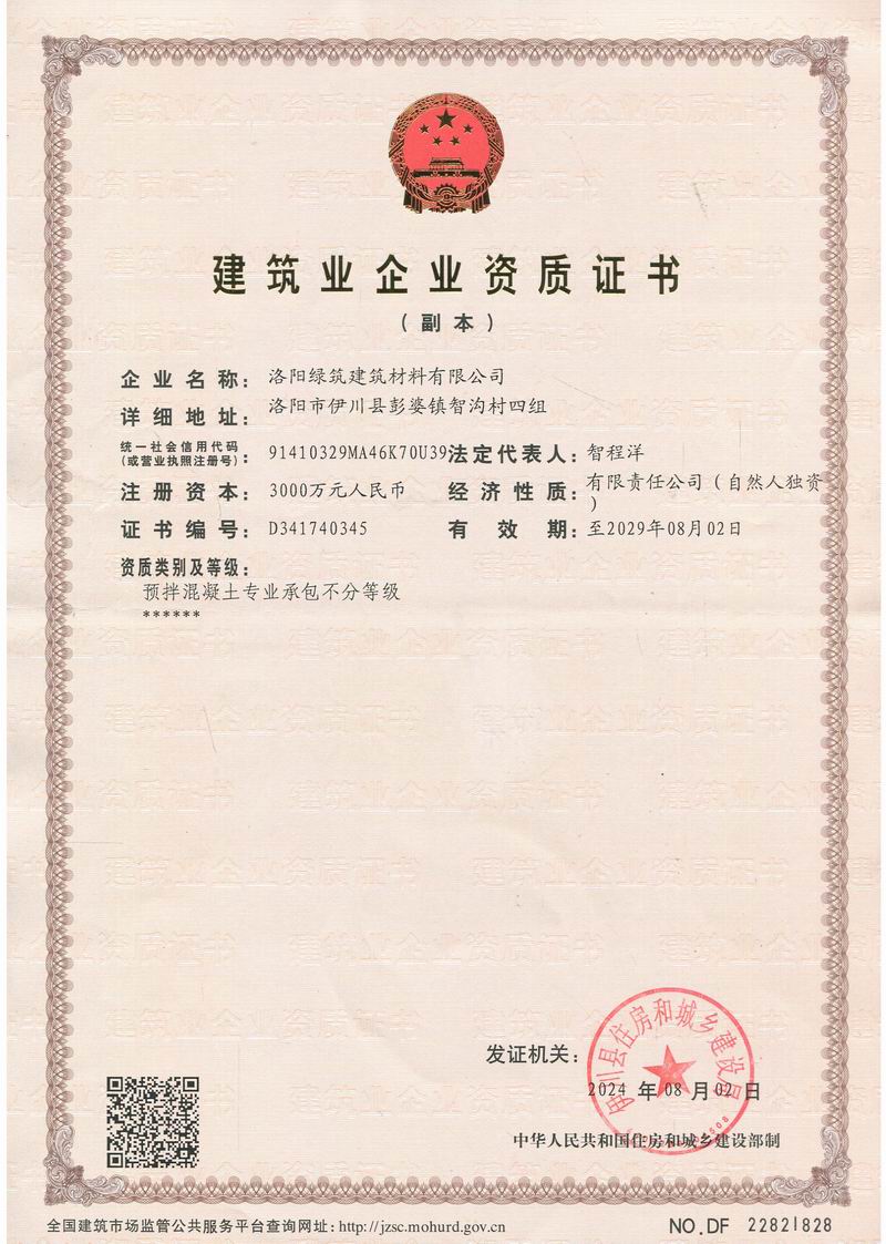建筑業(yè)企業(yè)資質(zhì)證書副本