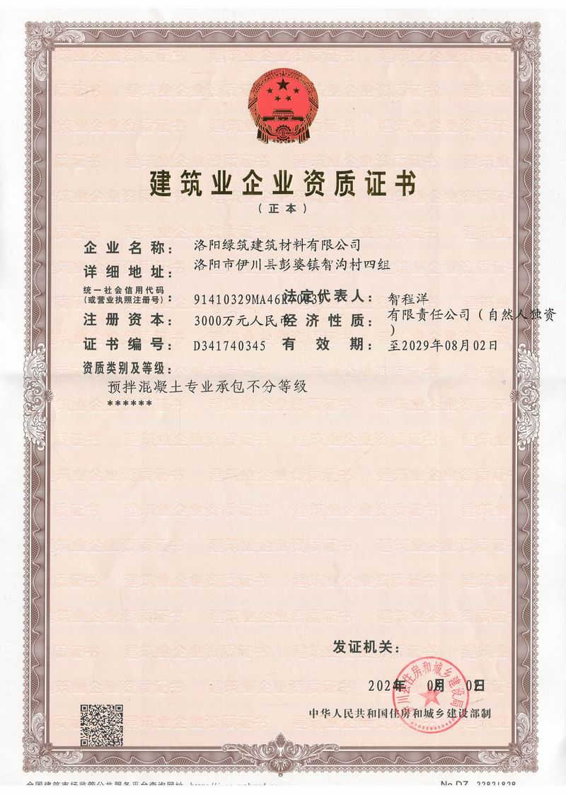 建筑業(yè)企業(yè)資質(zhì)證書正本