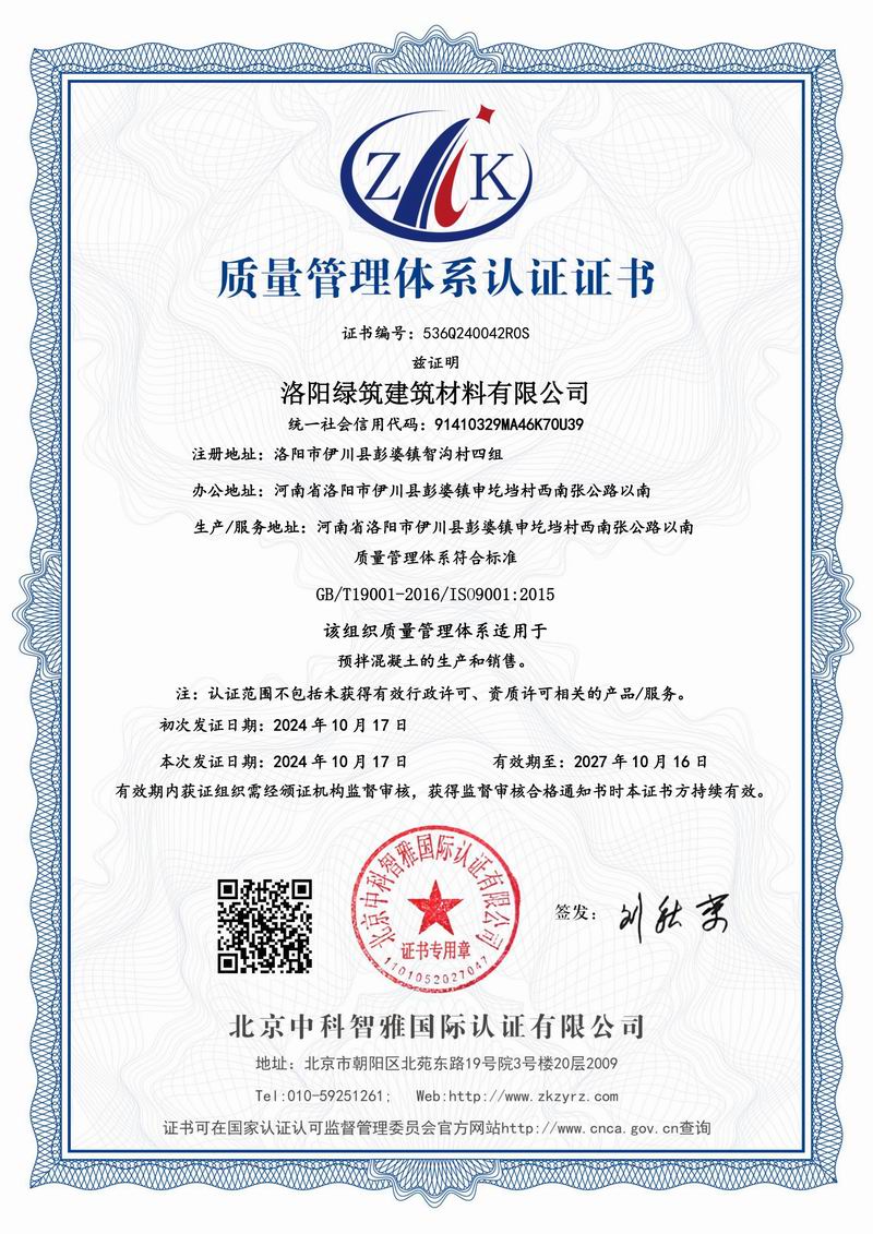 質(zhì)量管理體系認(rèn)證證書