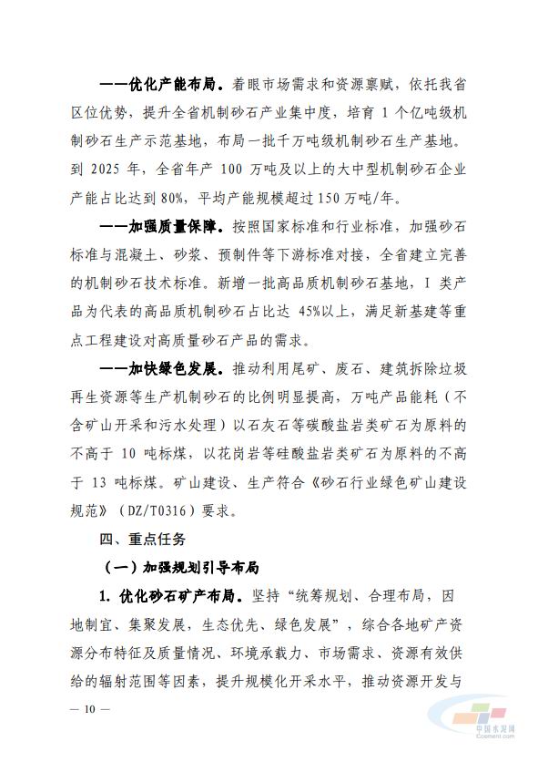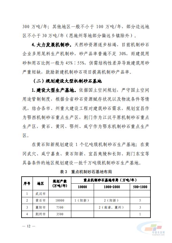 加快發(fā)展和推廣應(yīng)用機(jī)制砂石。統(tǒng)籌考慮各類砂石資源總體發(fā)展趨勢,推動機(jī)制砂石產(chǎn)業(yè)轉(zhuǎn)型升級;強(qiáng)化上下游銜接;支持引導(dǎo)機(jī)制砂生產(chǎn)企業(yè)定制生產(chǎn)適銷對路專用產(chǎn)品。