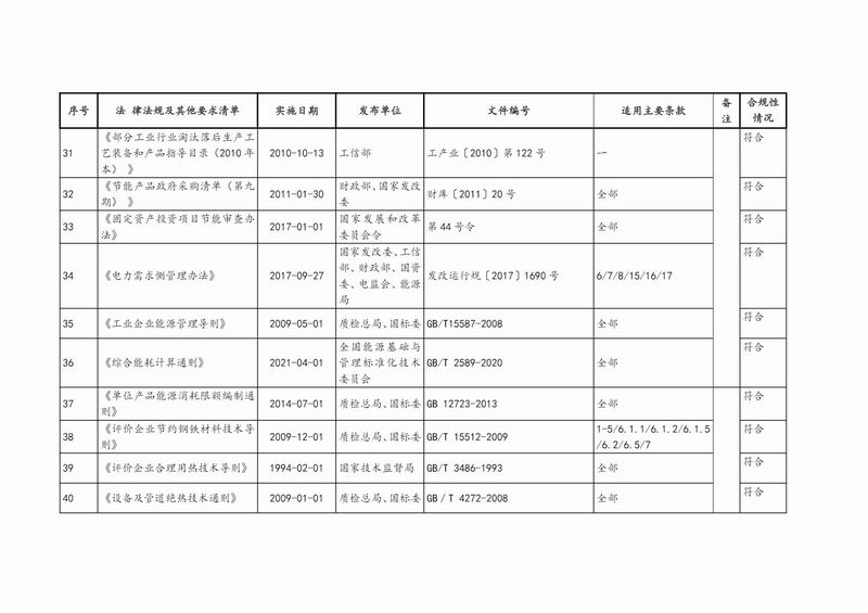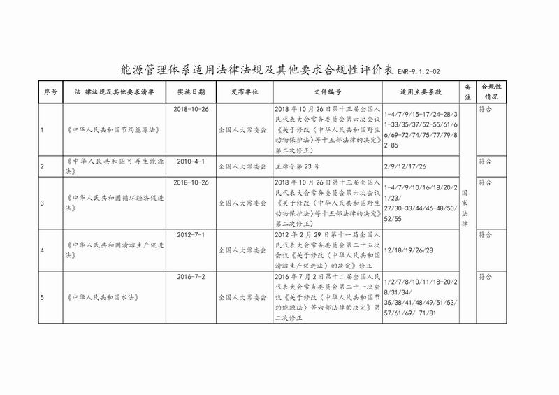 ENR-9.1.2-02 能源管理體系適用法律法規(guī)及其他要求合規(guī)性評價表