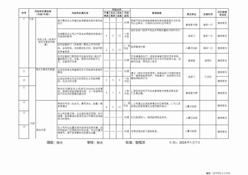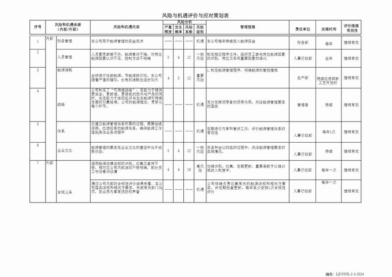 風(fēng)險(xiǎn)與機(jī)遇評(píng)價(jià)與應(yīng)對(duì)策劃表