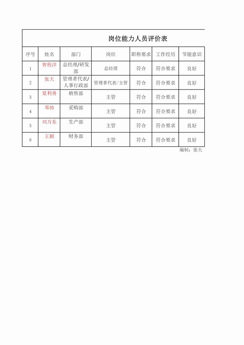 崗位人員能力評價表